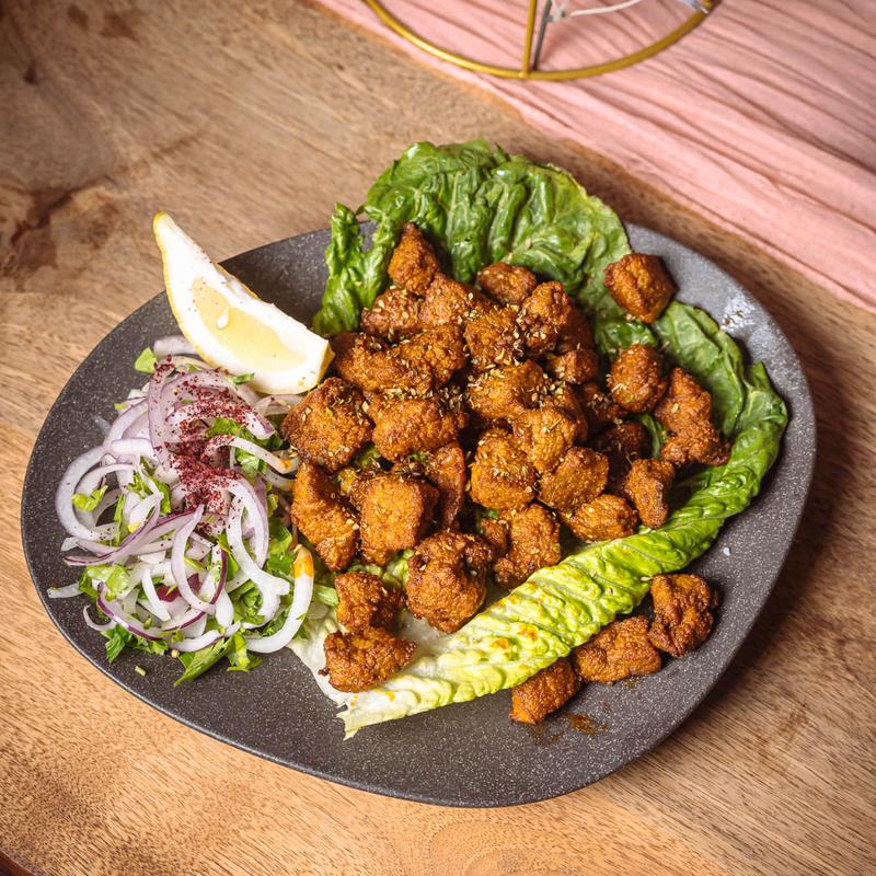 Cubes of calf liver pan-fried then served with onion and parsley salad.